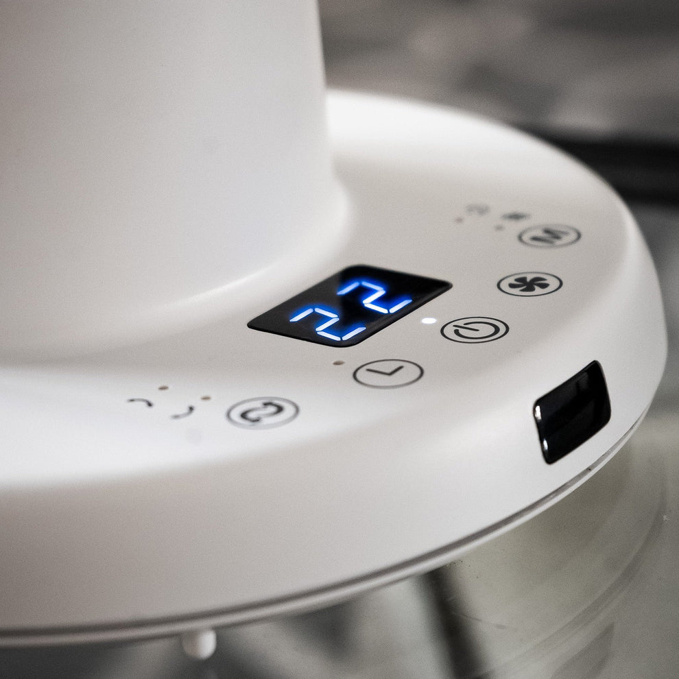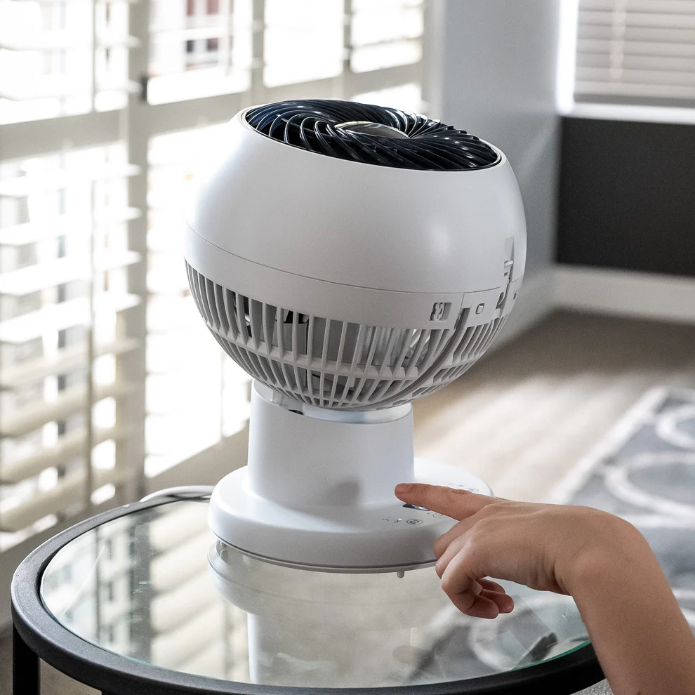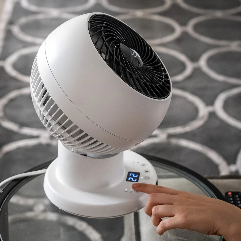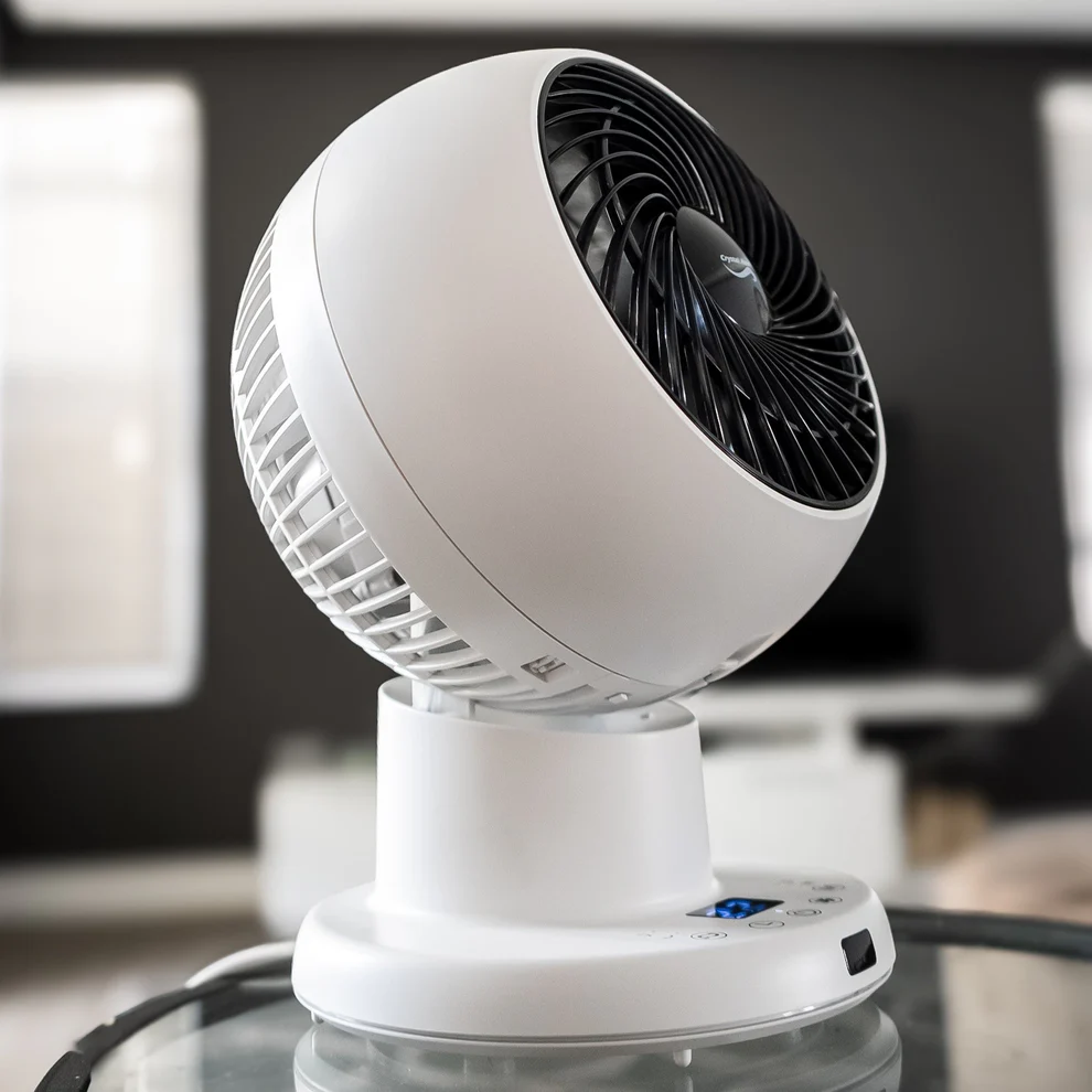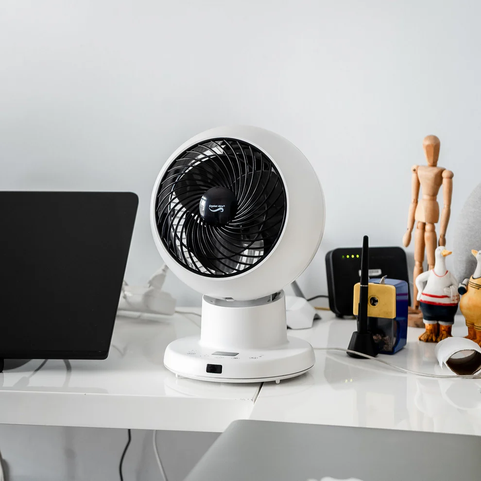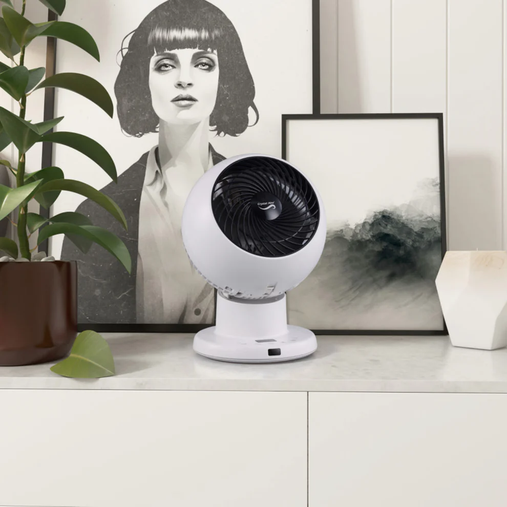 The Crystal Aire Turbo Cool Fan has 8 fan speeds, it rotates left and right 75 degrees on its base, and the head moves 75 degrees up and down. From the stylish Control Panel on the base, there is an LCD screen. From here you can control the movements of the fan up or down, left or right. You can also set the timer for 1 to 8 Hours or run the fan continuously. You may adjust the fan speed, there are 8 different speeds. When you select sleep mode the fan reduces its noise to a quiet mode while still blowing air consistently and at a comfortable speed. It comes with a remote for easy control.